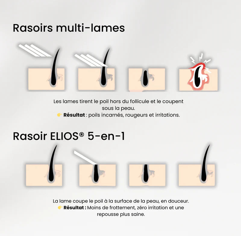Elios est un rasoir rechargeable de haute précision, 100 % étanche, conçu pour offrir un rasage ultra-doux sans douleur ni irritation. Équipé de 5 têtes interchangeables, il s’adapte à toutes les zones du corps et du visage (jambes, maillot, aisselles, visage, sourcils).